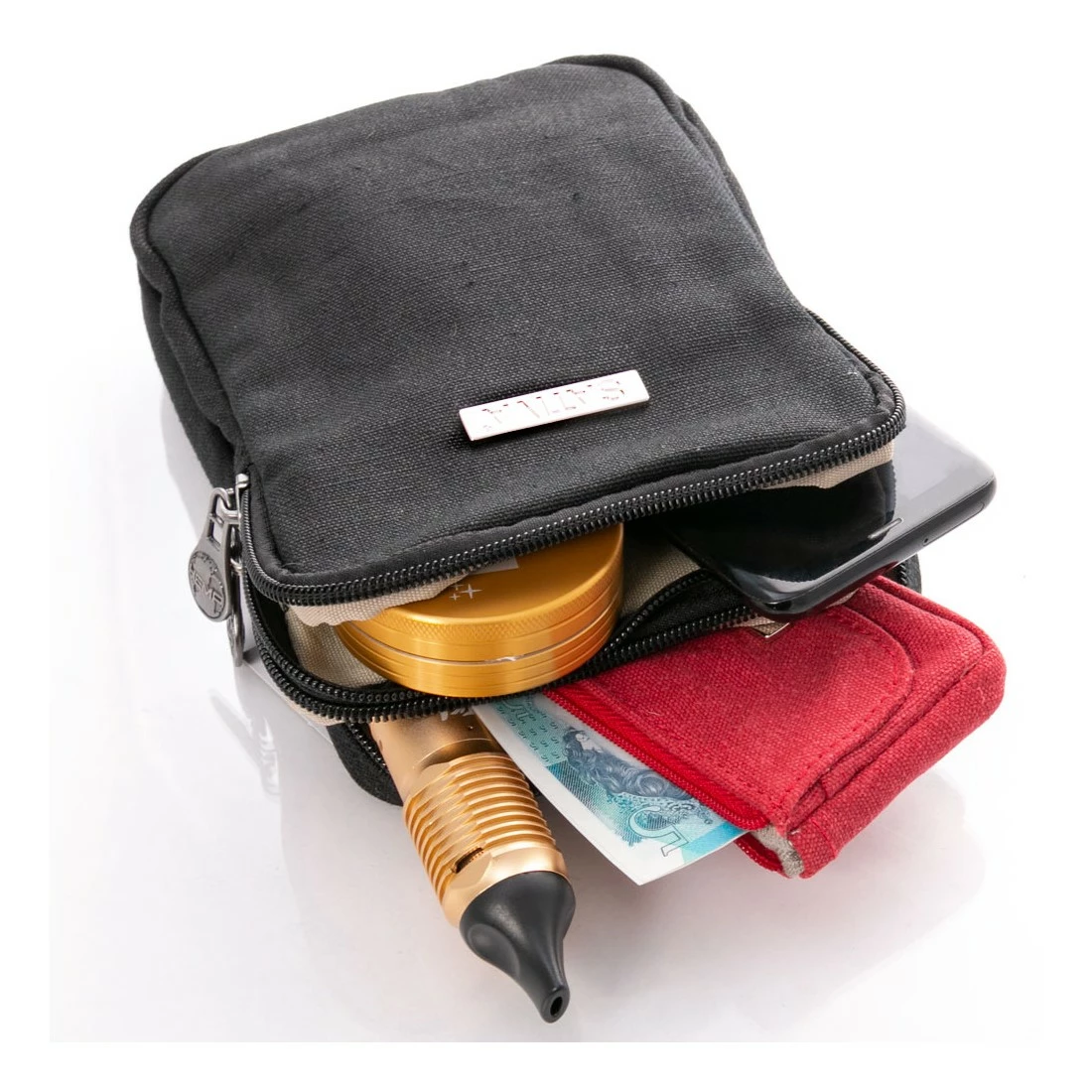 La correa ajustable es totalmente extraíble para crear una bolsa que se puede deslizar en una mochila o bolso de noche más grande.