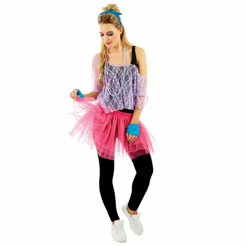 El producto incluye: camiseta de encaje con un hombro al descubierto, tutú fucsia, mitones azules, 2 collares y cinta del pelo azul.Este Disfraz está disponible en talla única y le queda a la mayoría de adultos.Disfraz resistente y de excelente calidad para complementar tu disfraz. Nuestra empresa fue fundada en 2009 por 3 amigos apasionados por los disfraces.Tenemos oficinas en US,UK y Europa.Contamos con cientos de disfraces,diseñados y confeccionados con la más alta calidad.Perfecto disfraz de los años 80 para carnavales y fiestas temáticas con colores Neón. Ideal para Halloween, fiestas de disfraces y cosplay de la moda alternativa de la época.