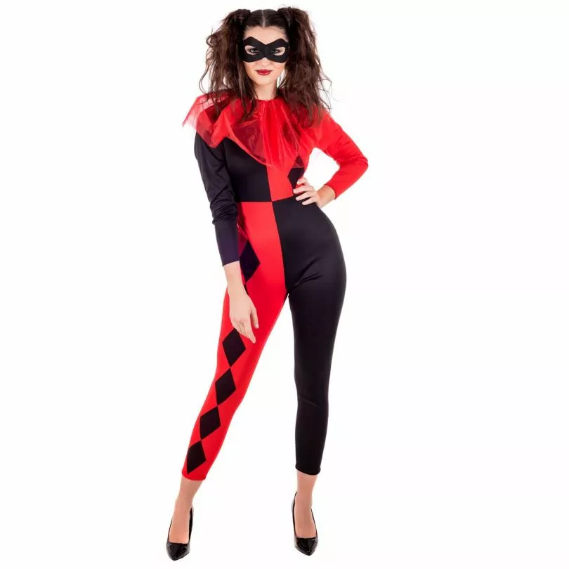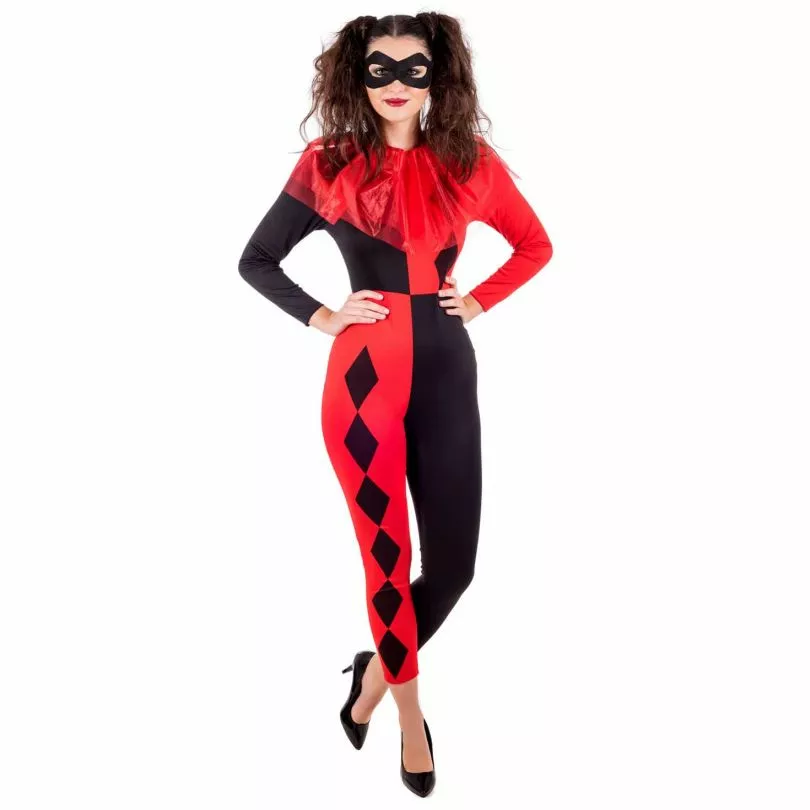 Conviértete en el antihéroe favorito de todos con este fantástico disfraz de Arlequín para mujer. Con un diseño negro y rojo icónico y reconocible al instante, este disfraz inspirado en los cómics es perfecto para Halloween, Carnaval y fiestas de disfraces.