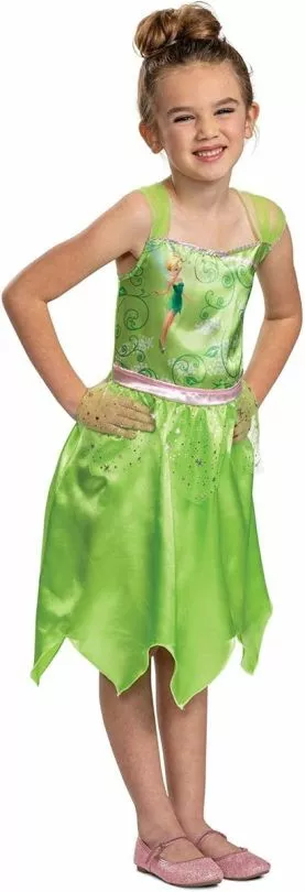 Incluye vestido. El disfraz es perfecto para el mundo de Nunca Jamás. El vestido es de satén, cinturón rosa y dobladillo asimetrico, además tiene estampado la imagen de campanilla en la parte delantera. Está disponible en tallas: XS (3-4 años), S (5-6 años) y M (7-9 años). Por favor, diríjase a la gráfica incluida en las fotos para más información de las tallas. Apto para uso de niños: Nuestros disfraces cumplen con las normativas de seguridad de UK y UE. Certificado de CE aprobado. Entra en la fantasía y el mundo de las hadas con el disfraz de Campanilla. Perfecto para carnaval, Halloween y fiestas de disfraces Disney. Ideal para fiestas temáticas de Nunca Jamás y Peter Pan.