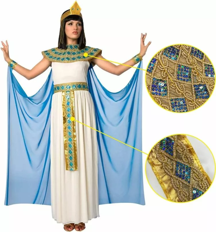 El producto incluye: Vestido con cinturón,collar, capa, tocado con cuentas y dos muñequeras decoradas. Disponible en tallas S, M, L, XL. Por favor, diríjase a la gráfica incluida en las fotos para más información de las tallas.Disfraz cómodo de llevar, resistente y de excelente calidad.Nuestra empresa fundada en 2009 por 3 amigos apasionados por los disfraces. Tenemos oficinas en US, UK y Europa. Contamos con miles de disfraces, diseñados y confeccionados con la más alta calidad.Perfecto disfraz de cleopatra azul para carnavales, Ideal para fiestas de cumpleaños, Halloween, eventos, fiestas temáticas y mucho más.