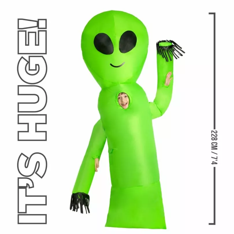 El disfraz de alienígena hinchable con brazos ondulantes para niños es un traje fantástico y tonto para Halloween y cualquier otra ocasión de disfraz. Este gran disfraz hinchable combina nuestro amor por los extraterrestres con nuestro amor por esos tipos de brazos ondulantes que se ven en las gasolineras.