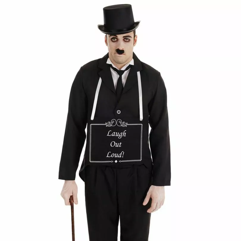 MENS SILENT FILM STAR COSTUME: Play the part in this black and white 20s costume! Inspired by an icon of the silent film era this instantly recognisable character outfit is perfect for costume parties and Halloween.