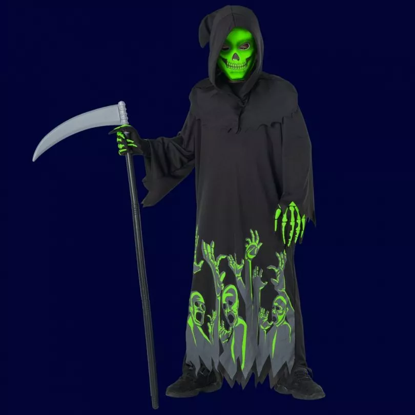 El producto incluye: Túnica, capucha, máscara, guantes y guadaña. La mascara y guantes brillan en la oscuridad. La guadaña está dividida en 4 partes que se unen con tornillos. Este Disfraz de niño esta disponible en tallas: S (4-6 Años), M (7-9 Años), L (10-12 Años) Y XL (13-14 Años). Por favor, diríjase a la gráfica incluida en las fotos para más información de las tallas.Disfraz cómodo de llevar, resistente y de excelente calidad. La mascara y guantes brillan en la oscuridad. La guadaña está dividida en 4 partes que se unen con tornillos. Apto para uso de Niños: El disfraz cumple con las normativas de Seguridad de UK y UE. Certificado de CE aprobado. Perfecto disfraz de la muerte para Halloween y fiestas temáticas de terror. Ideal para carnavales, eventos escolares, cosplay de la parca, fiestas de disfraces y Mucho Más!