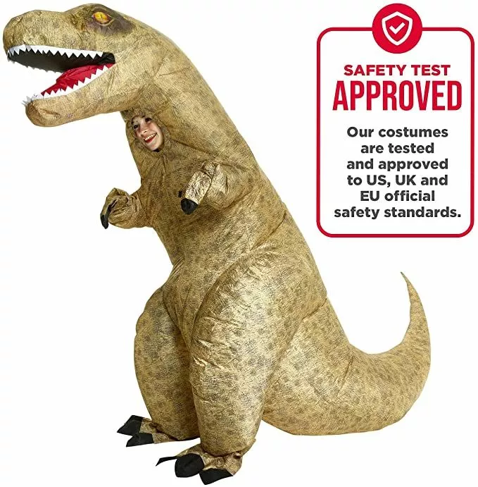 El producto incluye: El disfraz hinchable con ventilador integrado (Requiere de 4 baterías AA no incluidas). Este disfraz de niños está disponible en talla única y le queda a la mayoria de niños. Altura recomendada 120 cm a 155 cm. Por favor, diríjase a la gráfica para más información de las tallas.Disfraz cómodo de llevar, resistente y de excelente calidad. Cierres elásticos y ventilador de alta potencia, que asegura más de 4 horas de duración para que se mantenga inflado. Apto para uso de niños: El disfraz cumple con las normativas de seguridad de UK y UE. Certificado de CE aprobado. Perfecto disfraz hinchable T Rex para Halloween y fiestas temáticas originales del jurásico. Ideal para eventos escolares, fiestas de disfraces, cosplay de T Rex y mucho más!
