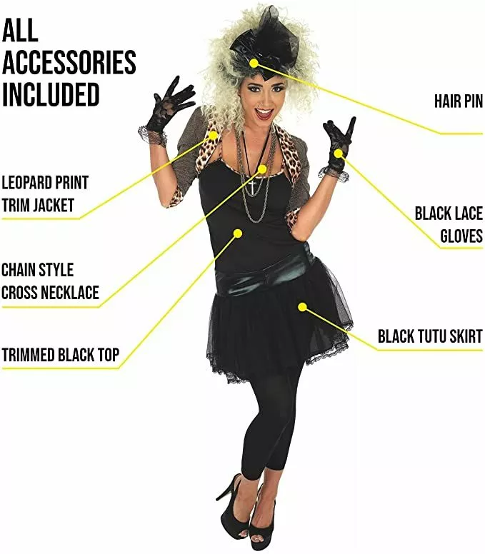 Conviértete en un icono clásico de la música pop de los años 80 con este fantástico disfraz para mujer. Eres una “material girl” en un “material world”.
