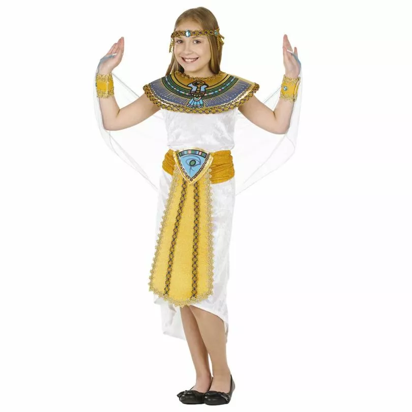 El producto incluye: Vestido, collar grande con adornos llamativos, cinturón grande y dorado, brazaletes y cinta para la cabeza con adornos brillantes. Este disfraz de niñas está disponible en tallas: M (7- 9 Años), L (10-12 Años) y XL (13-14 años). Por favor, diríjase a la gráfica incluida en las fotos para más información de las tallas.Disfraz cómodo de llevar, resistente y de excelente calidad. Apto para uso de niños: El disfraz cumple con las normativas de seguridad de UK y UE. Certificado de CE aprobado. Perfecto disfraz de faraono del antiguo Egipto para carnavales y fiestas temáticas Egipcias. Ideal para eventos escolares, fiestas de disfraces y cosplay de la bella Cleopatra.