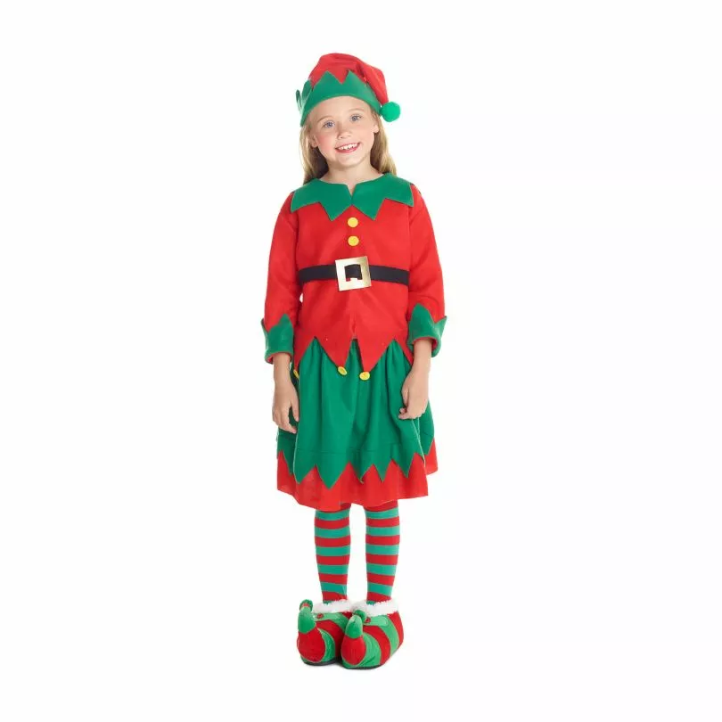 Tu hijo puede convertirse en uno de los ayudantes de Papá Noel estas fiestas con el disfraz de elfo de Navidad para niños. Este simpático traje es perfecto para que su hijo o hija se lo ponga para la fiesta de Navidad o para posar para la postal navideña familiar. Este disfraz incluye un detallado top, una falda y un gorro.