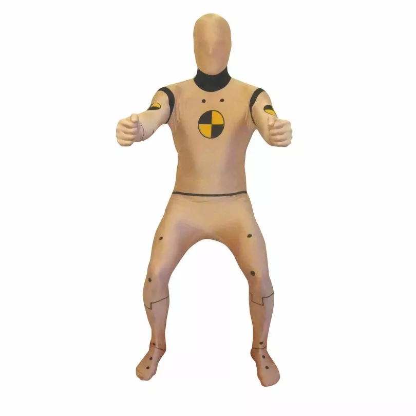 Incluye: Disfraz completo y capucha con doble cremallera para quitarlo fácilmente. El material es de alta calidad con máxima elasticidad. Se puede ver, beber y por supuesto respirar a través de él!Este disfraz de adulto está disponible en tallas M, L, XL y XXL. Por favor, diríjase a la gráfica incluida en las fotos para más información de las tallas.Disfraz cómodo de llevar, resistente y de excelente calidad. La cremallera es resistente y las costuras están reforzadas en los puntos de tensión. Lavar con agua fría y secar al aire libre.Nuestra empresa fue fundada en 2009 por 3 amigos apasionados por los disfraces.Tenemos oficinas en US,UK y Europa.Contamos con cientos de disfraces,diseñados y confeccionados con la más alta calidad.Perfecto disfraz de Dummy ajustado al cuerpo para sorprender en carnavales y fiestas de disfraces originales y divertidas. Ideal para cosplay del muñeco de pruebas de seguridad.