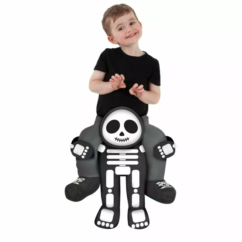 El producto incluye: El disfraz a caballito. Este disfraz infantil está disponible en talla única y le queda a la mayoria de niños pequeños. Altura recomendada 80cm a 110 cm. Por favor, diríjase a la gráfica para más información de las tallas.Disfraz cómodo de llevar, resistente y de excelente calidad. El disfraz a hombros cubre las piernas (Toma solo 1 minuto el rellenarlo usando papel, toallas o cualquier otro material). Apto para uso de niños: El disfraz cumple con las normativas de seguridad de UK y UE. Certificado de CE aprobado. Perfecto disfraz de esqueleto de niños pequeños para Halloween y fiestas de disfraces temáticas de terror. Idel para niños y niñas, carnavales y fiestas de disfraces originales de calavera y huesos.