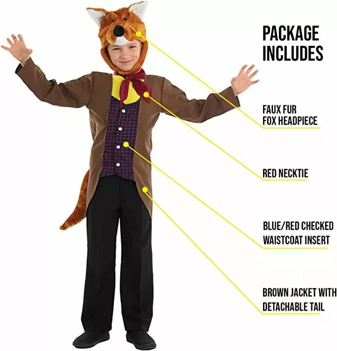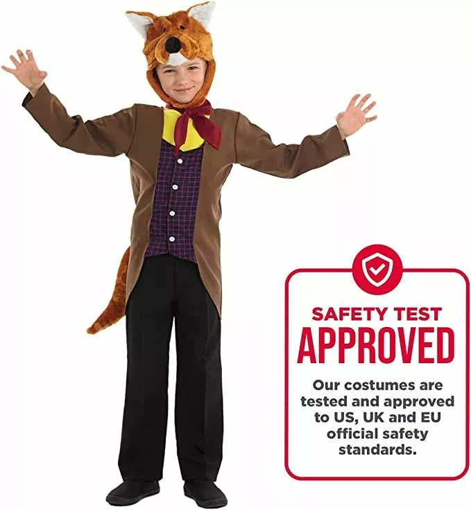 El producto incluye: Chaqueta marrón y pechera amarilla con chaleco azul y rojo a cuadros incorporado, pañuelo rojo para el cuello y tocado de zorro de piel falsa.Este disfraz de niños está disponible en tallas: S(4-6 Años), M (7- 9 Años),L (10-12 Años) y XL(13-14 años).Por favor, diríjase a la gráfica incluida en las fotos para más información de las tallas. Disfraz cómodo de llevar, resistente y de excelente calidad. Apto para uso de niños: El disfraz cumple con las normativas de seguridad de UK y UE. Certificado de CE aprobado. Perfecto disfraz de Superzorro para carnavales y fiestas temáticas de libros infantiles. Ideal para niñas y niños en Halloween, feria del libro y cosplay del libro de Roald Dahl.