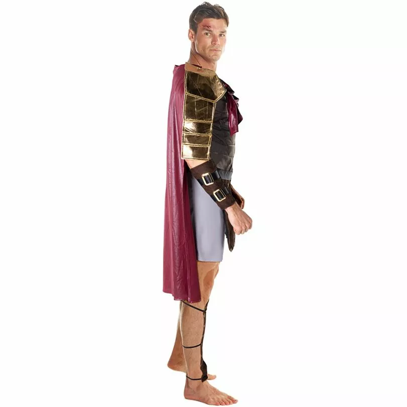 El producto incluye: Túnica con cinturón y hebilla dorada, protección para el brazo dorado, muñequeras, capa granate y espinilleras en marrón y dorado (No incluye el escudo ni la espada).Disponible en tallas L y XL. Por favor, diríjase a la gráfica incluida en las fotos para más información de las tallas.Disfraz cómodo de llevar, resistente y de excelente calidad.Nuestra empresa fue fundada en 2009 por 3 amigos apasionados por los disfraces.Tenemos oficinas en US, UK y Europa.Contamos con miles de disfraces, diseñados y confeccionados con la más alta calidad.Perfecto para carnavales y fiestas temáticas de romanos. Ideal para fiestas de cumpleaños, Halloween, cosplay de los famosos gladiadores y mucho más!