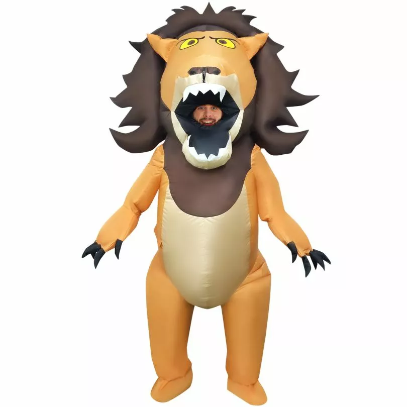 El producto incluye: El disfraz hinchable con ventilador integrado (Requiere de 4 baterías AA no incluidas). Tiene bolsillo externo para tener a mano tu movil y cartera!Este disfraz de adulto está disponible en talla única y le queda a la mayoría de adultos. Altura recomendada 165 cm a 188 cm. Por favor, diríjase a la gráfica para más información de las tallas.Disfraz cómodo de llevar, resistente y de excelente calidad.Cierres elásticos y ventilador de alta potencia,que asegura más de 4 horas de duración para que se mantenga inflado.Nuestra empresa fue fundada en 2009 por 3 amigos apasionados por los disfraces.Tenemos oficinas en US,UK y Europa.Contamos con cientos de disfraces,diseñados y confeccionados con la más alta calidad.Perfecto difraz hinchable de león para despedida de solteros, carnavales y fiestas temáticas de animales. Ideal para sorprender amigos con divertido disfraz en Halloween, cosplay de león y mucho más!