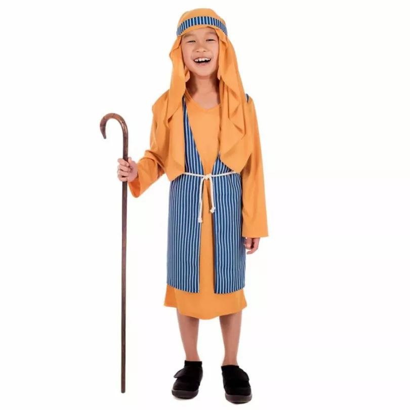 El producto incluye: Túnica naranja, chaleco azul a rayas, cinturón blanco de cuerda y tocado naranja.Este disfraz de niños está disponible en tallas: S(4-6 Años), M(7- 9 Años), L(10-12 Años) y XL(13-14 años). Por favor, diríjase a la gráfica incluida en las fotos para más información de las tallas. Disfraz cómodo de llevar, resistente y de excelente calidad. Apto para uso de niños: El disfraz cumple con las normativas de seguridad de UK y UE. Certificado de CE aprobado. Perfecto disfraz de pastor para navidades y el portal de Belén. Ideal para obras de teatro, eventos escolares en Navidad y cosplay de hebreo o san José el padre de Jesús.