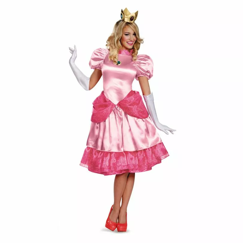 Incluye: Vestido rosa con amuleto adherido a la tela, enagua y corona con diadema. Este disfraz de adulto está disponible en tallas XS, S, M, L y XL. Por favor, diríjase a la gráfica incluida en las fotos para más información de las tallas. Disfraz cómodo de llevar, resistente y de excelente calidad. Nuestra empresa fue fundada en 2009 por 3 amigos apasionados por los disfraces. Tenemos oficinas en US,UK y Europa. Contamos con cientos de disfraces,diseñados y confeccionados con la más alta calidad. Perfecto disfraz de princesa deluxe para carnavales y fiestas temáticas del video juego de los 90. Ideal para disfraz en grupo de los personajes de Mario Bros y cosplay de la princesa Peach.