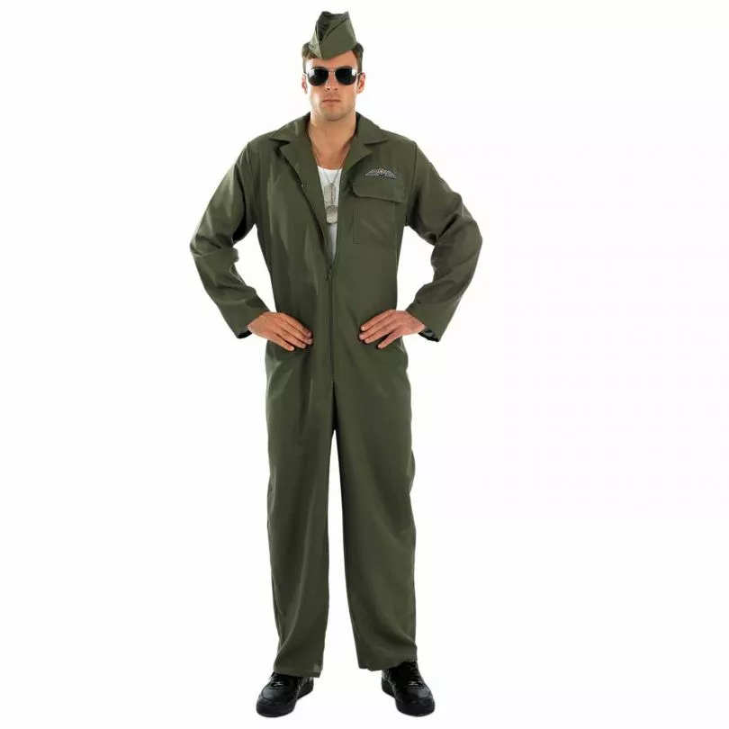 El producto incluye: Mono de piloto verde militar, gorro a juego y gafas negras estilo aviador.Este disfraz de adulto está disponible en tallas M, L y XL. Por favor, diríjase a la gráfica incluida en las fotos para más información de las tallas.Disfraz cómodo de llevar, resistente y de excelente calidad. Nuestra empresa fue fundada en 2009 por 3 amigos apasionados por los disfraces.Tenemos oficinas en US,UK y Europa.Contamos con cientos de disfraces,diseñados y confeccionados con la más alta calidad.Perfecto disfraz de piloto de avion caza para divertise en carnavales y fiestas temáticas. Ideal para juegos de rol, fiestas con amigos y cosplay de guapo aviador como la película.