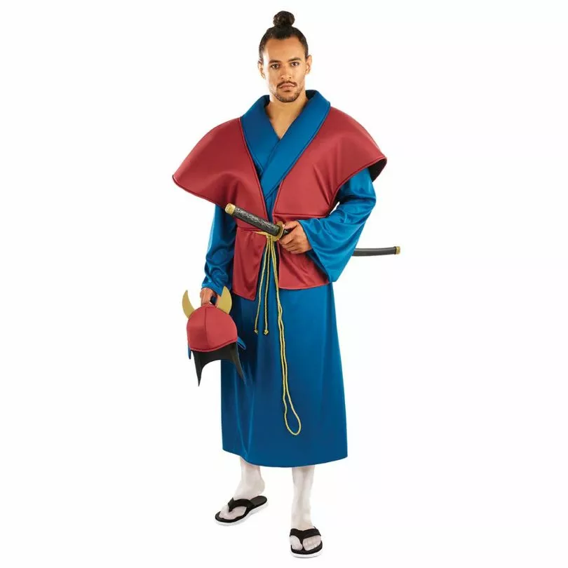El producto incluye: Toga azul, armadura roja, cinturón de cuerda amarillo y gorro en forma de casco rojo con cuernos dorados.Este disfraz de adulto está disponible en tallas M, L y XL. Por favor, diríjase a la gráfica incluida en las fotos para más información de las tallas.Disfraz cómodo de llevar, resistente y de excelente calidad. Nuestra empresa fue fundada en 2009 por 3 amigos apasionados por los disfraces.Tenemos oficinas en US,UK y Europa.Contamos con cientos de disfraces,diseñados y confeccionados con la más alta calidad.Perfecto disfraz de samurái para Halloween y fiestas temáticas japonesas. Ideal para juegos de rol de la elimite militar de Japón y cosplay de los legendarios guerreros del antiguo Japón.