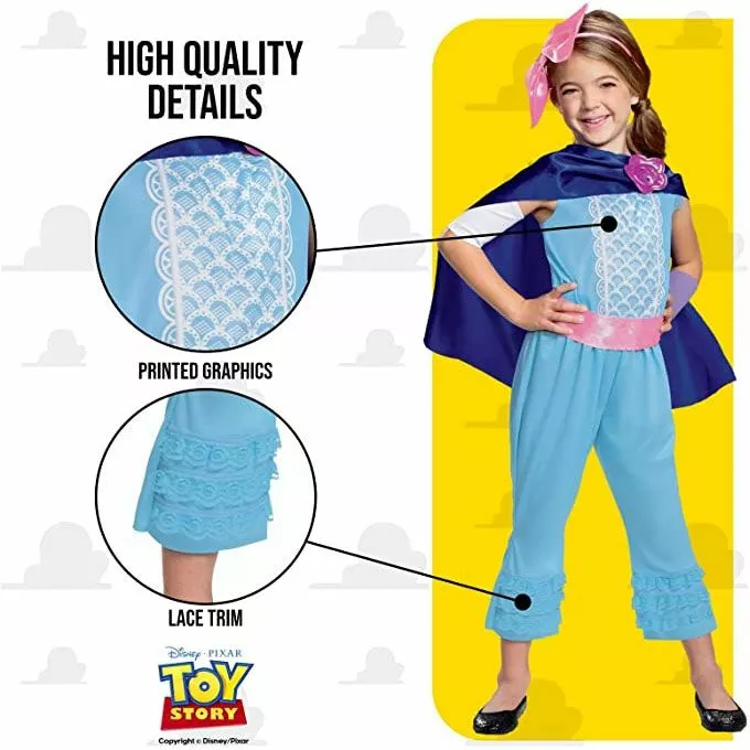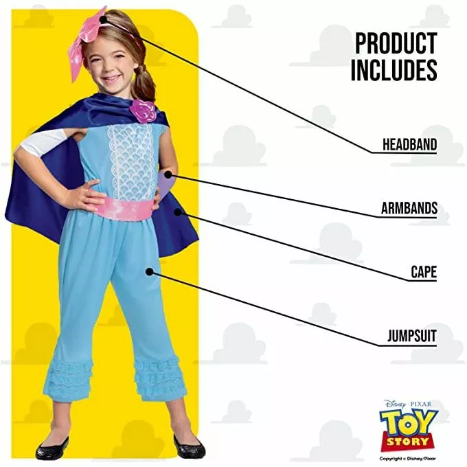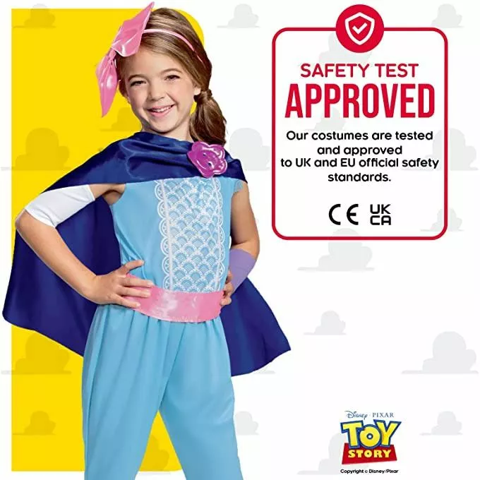 Incluye mono estampado y sombrero de la famosa cowgirl de Toy Story. El disfraz es de excelente calidad. El mono tiene adornos de encaje y con la parte inferior lleva unos pequeños volantes. La capa y el cinturón de satén tienen velcro para sujertarlos bien. La diadema tiene lazo de satén. Está disponible en talla S (5-6 años). Por favor, diríjase a la gráfica incluida en las fotos para más información de las tallas. Apto para uso de niños: Nuestros disfraces cumplen con las normativas de seguridad de UK y UE. Certificado de CE aprobado. Las niñas se sentirán como Bo Peep, la tierna y amable pastocilla de Toy Story con este disfraz de Disney; perfecto para Halloween, Carnavales, fiestas de disfraces y cosplay de la amiga de Woody.