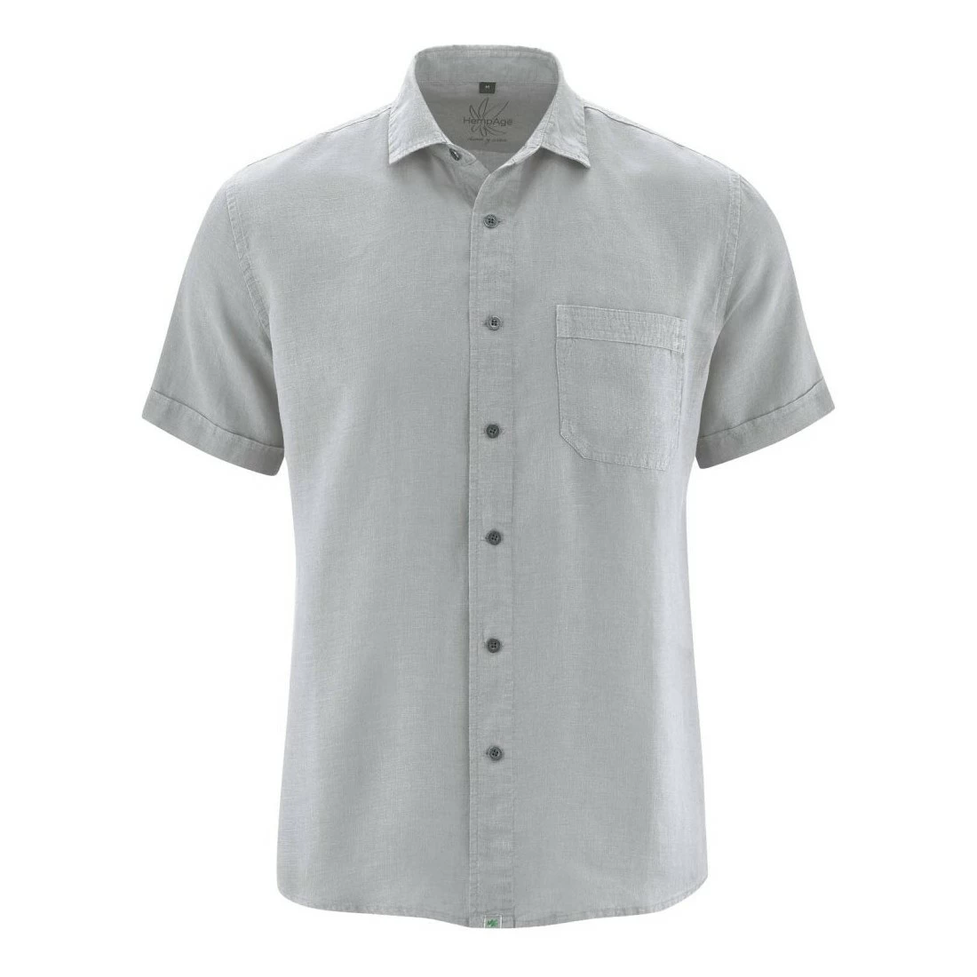 Camisa de manga corta con tejido ligero en 100% cáñamo, botones metálicos libres de níquel, bolsillo en el pecho.