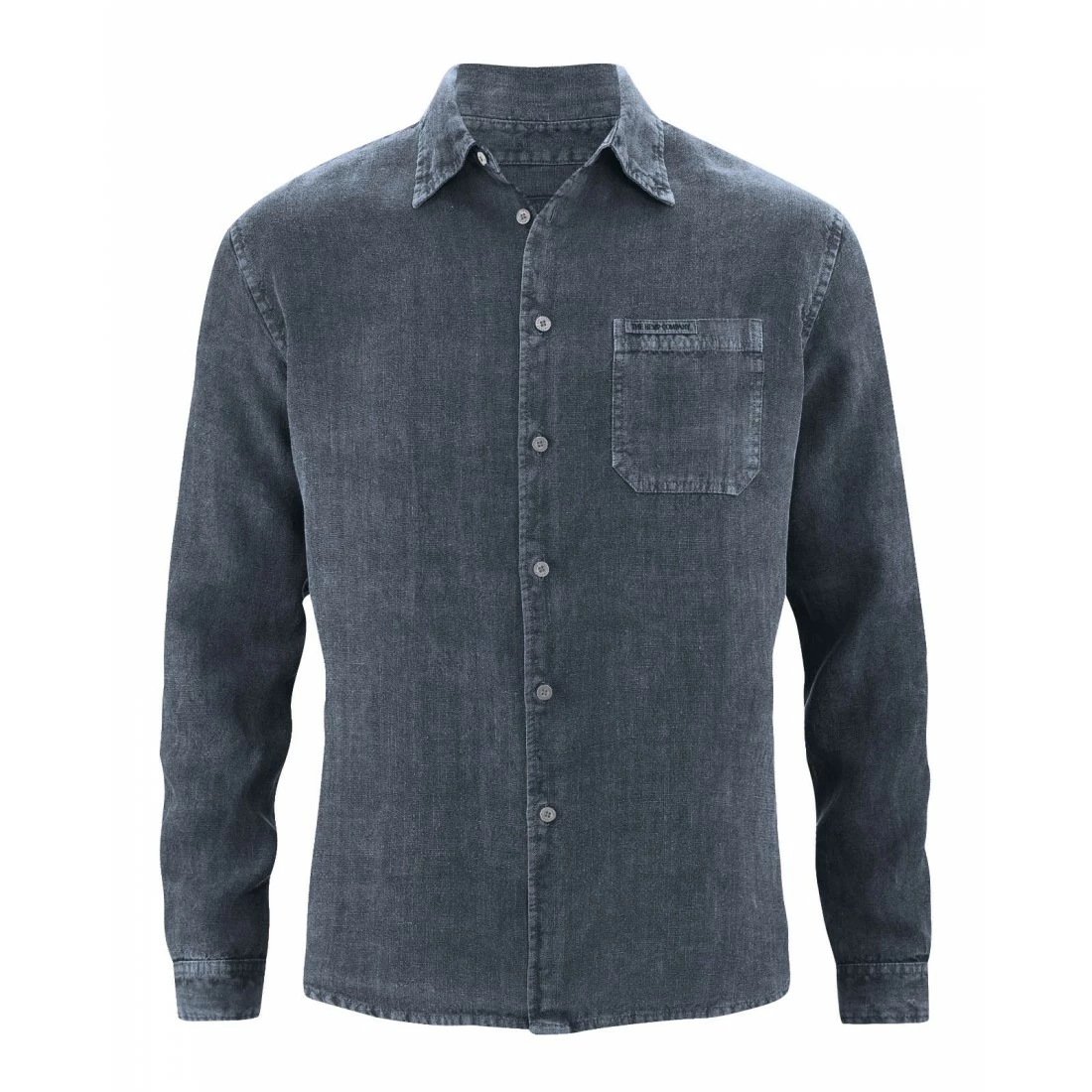Camisa con apariencia ligeramente descolorida, botones sin níquel, bolsillo en el pecho.