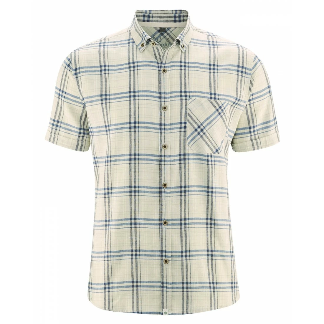 Camisa a cuadros, manga corta con botones de coco. Vegano