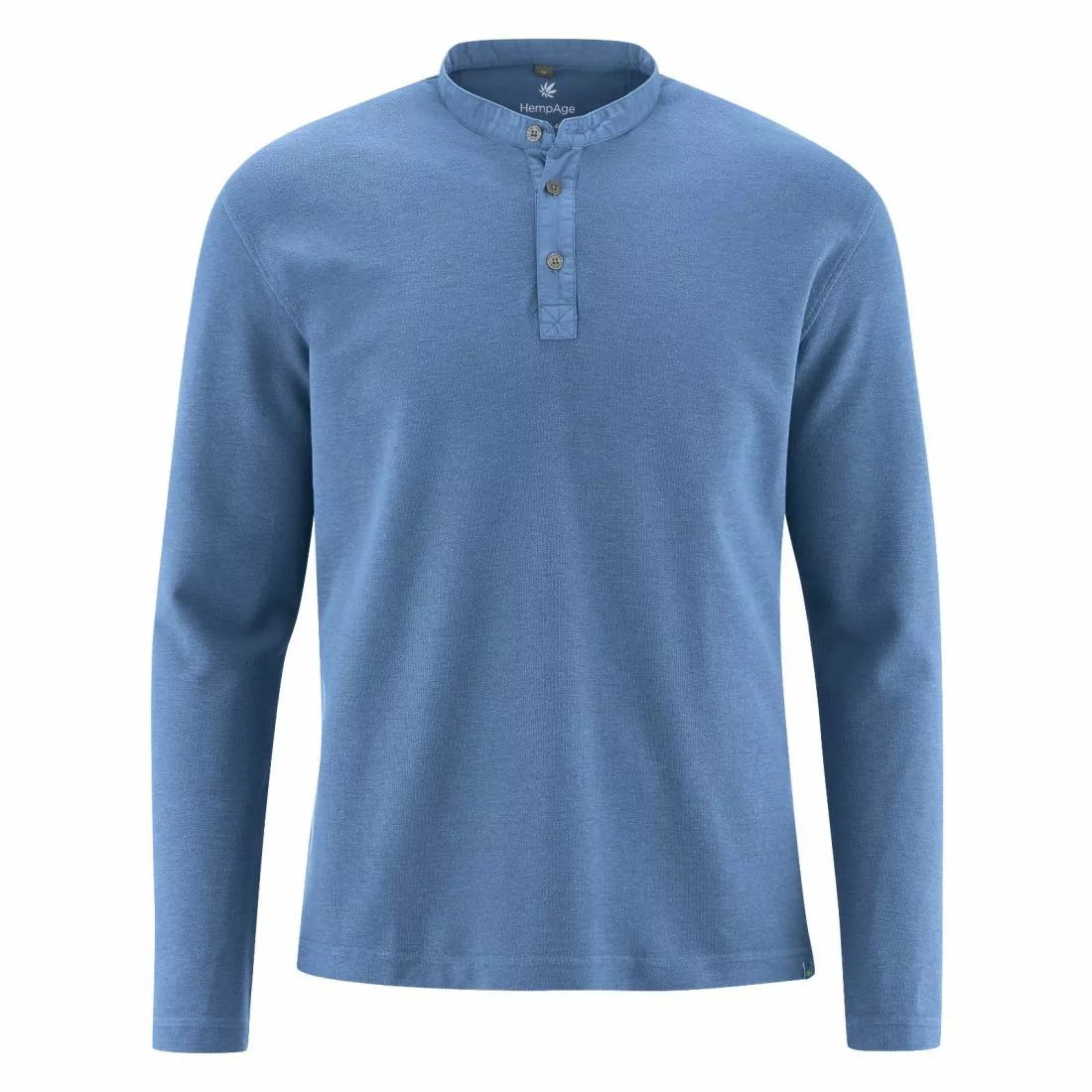Camiseta de manga larga, con cuello de mao y botones de metal sin níquel que nos da una prenda vegana.