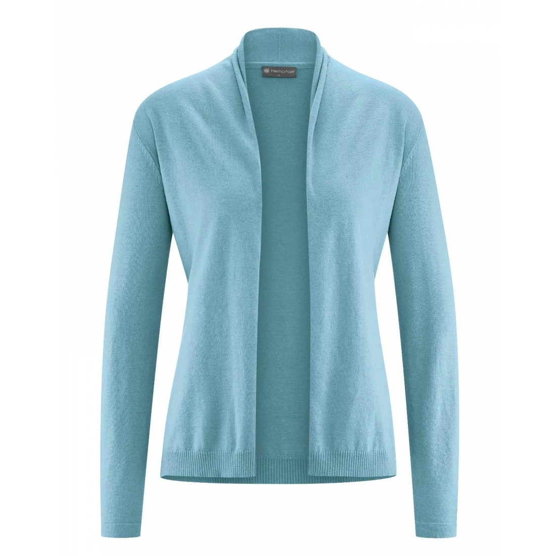 Chaleco de malla para mujer con cuello de chal y acabado de costilla en las mangas y parte inferior del chaleco.
