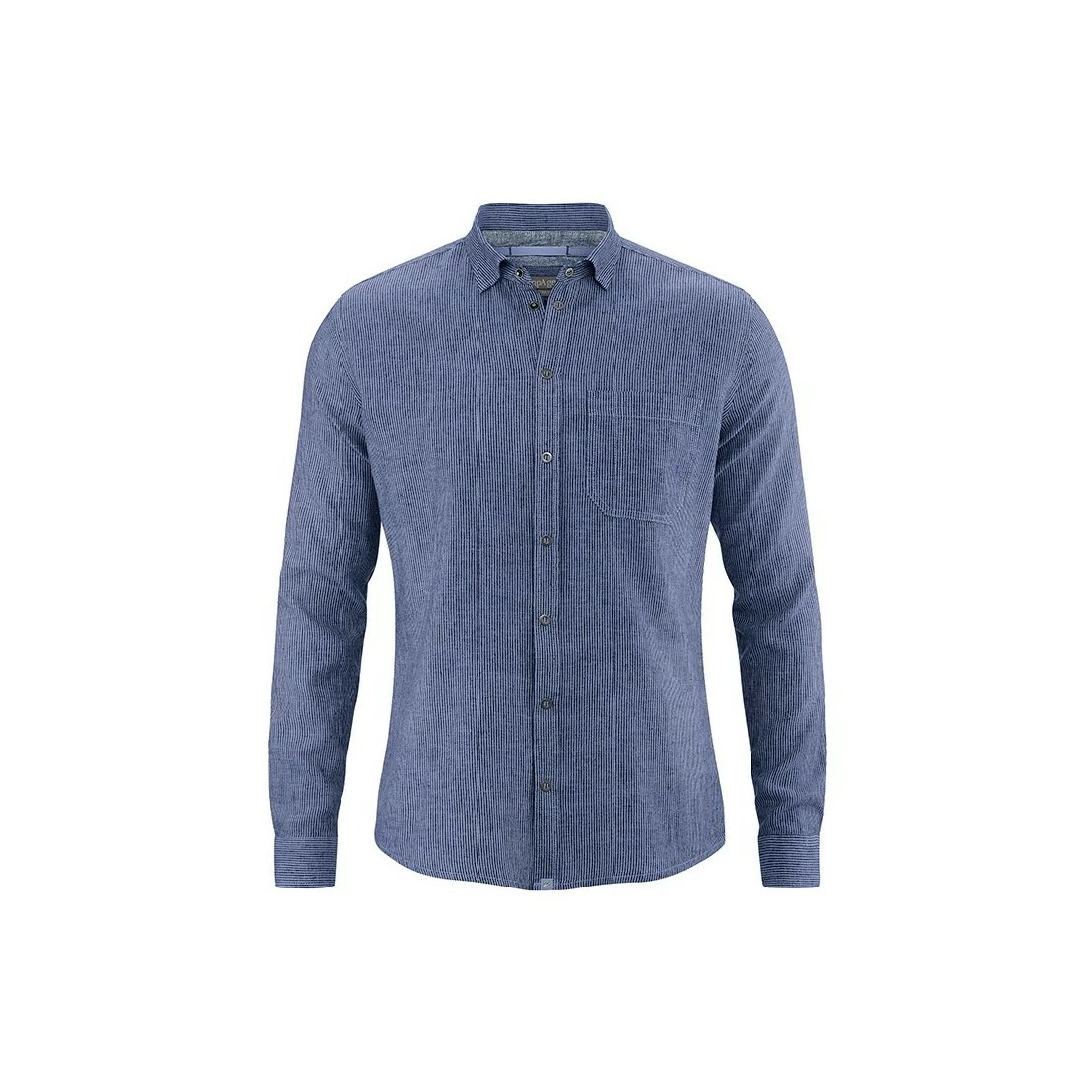 Con rayas muy finas y sutiles, esta camisa de cáñamo y algodón orgánico es muy ligero que fue diseñado en un tejido de 55% de cáñamo y el 45% de algodón orgánico 120 g / m². Camisa con un bolsillo del pecho.