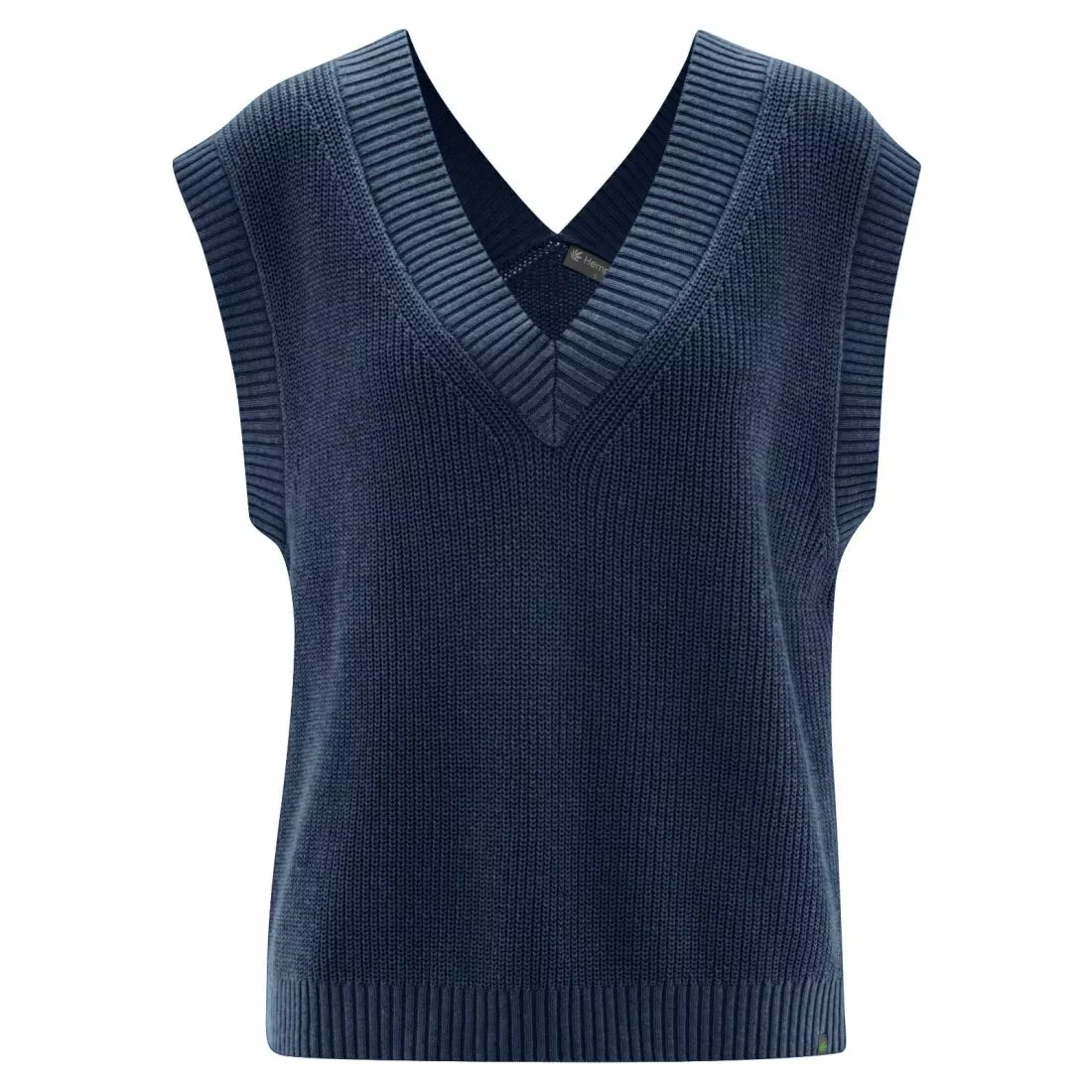 Suéter afilado sin mangas en cáñamo y algodón orgánico, cuello V y corte amplio con acabados acanalados.