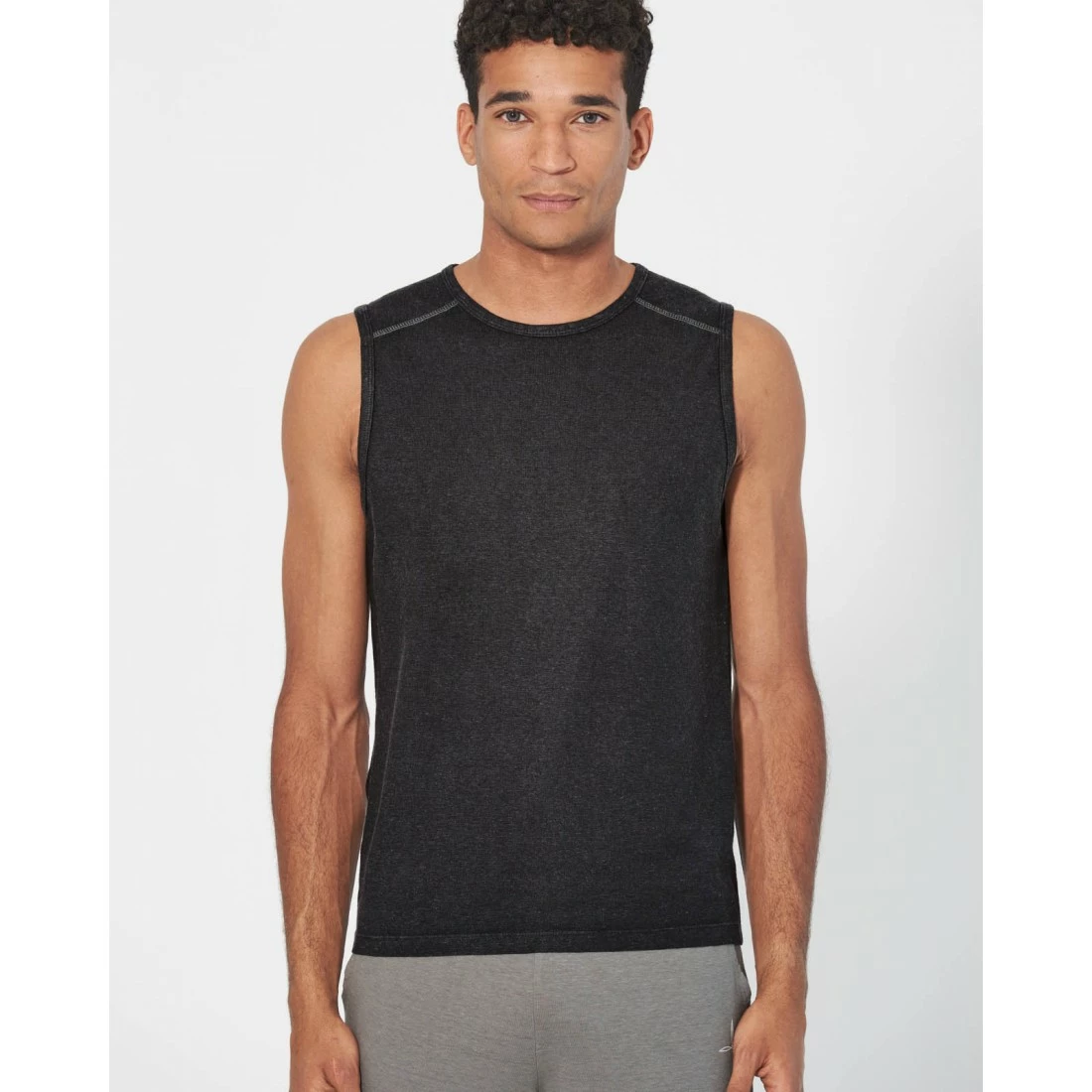 Camiseta sin mangas para hombres, para la práctica del deporte, cáñamo y algodón orgánico que son materiales transpirables. Decoraciones gráficas en la parte superior de la espalda.