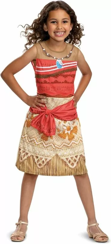 How far will your little one go in this Official Disney Moana costume, includes the dress. This dress made with printed details and shades of red on the top half and cream on the bottom half is perfect to turn any child into real life Moana.