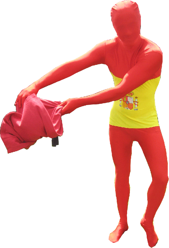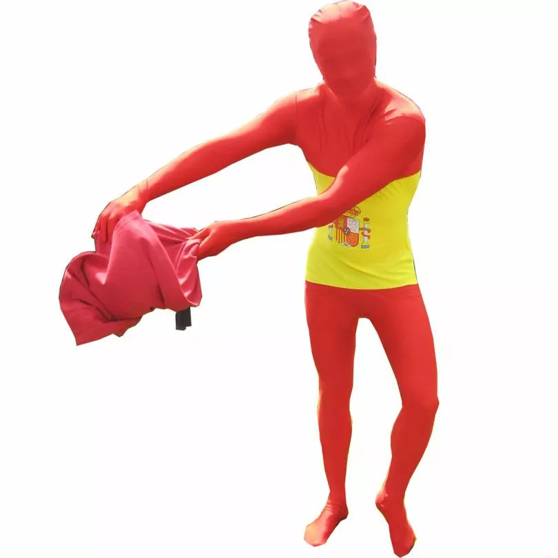 La lluvia en España cae principalmente en la planicie pero su REINO EN ESPAÑA ni siquiera empieza hasta que se haya puesto uno de estos muy buenos Morphsuits de España.Usted querrá bañarse con sangría y provocar a un toro antes de salir corriendo por la calle inundado de tomates una vez se haya puesto este fabuloso atuendo con tema España. Doble costura en toda la parte interior del traje para asegurar su durabilidad y gracias a las dos cremalleras se podrá quitar el traje fácil y rápidamente.Más la Spandex que significa un mejor ajuste le advertimos que las imitaciones son holgadas y guangas. Un excelente atuendo para Halloween despedidas de soltero partidos de la Copa del Mundo o solo para pretender que es Antonio Banderas. Quien es español.