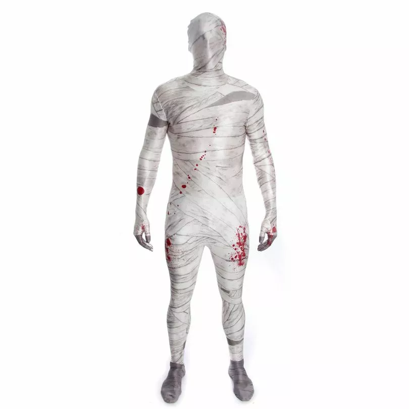 Nuestro Morphsuit de Momia es la MAMÁ de todos los disfraces así que traiga los vendajes y camine como un egipcio” (pregúntele a sus papás) la próxima vez que haya un festival Halloween o carnaval.Estire esos brazos y arrastre los pies como la cosa muerta y quejumbrosa que es será la vida (eh ¿muerte?) y alma de la fiesta. Viene con manchas de sangre para gritos extra.Doble costura en toda la parte interior del traje para asegurar su durabilidad y gracias a las dos cremalleras se podrá quitar el traje fácil y rápidamente.Nuestra combinación especial de materiales asegura una visión clara y el 13% de Spandex significa no solo un excelente ajuste (a diferencia de la competencia que es malísima) sino también mucha comodidad.”