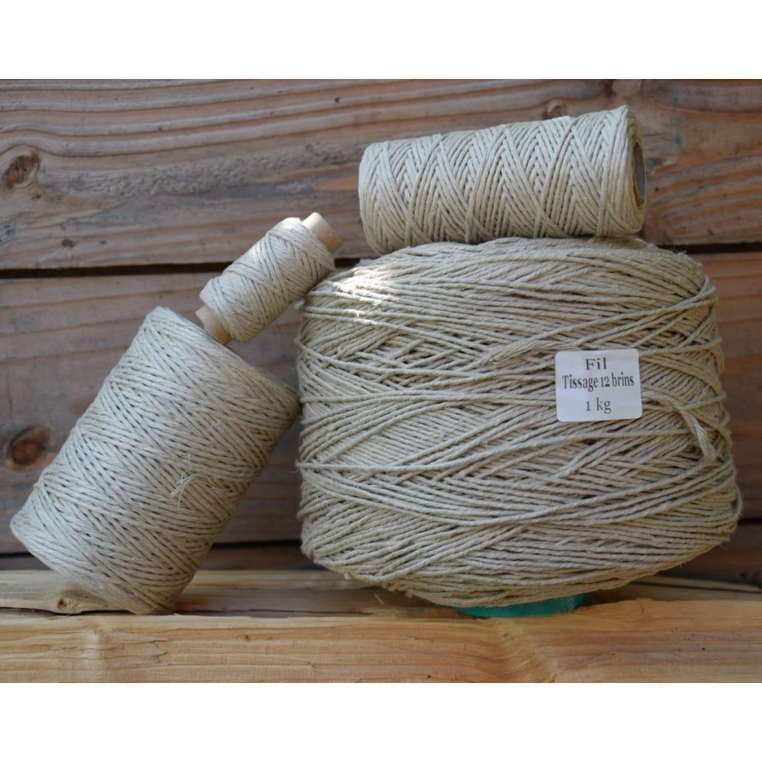 Para tejer, ganchillo, collares… hilo de cáñamo en 12 hilos de aproximadamente 1,5mm. Empaquetado con 10, 60, 200 y 800 metros.
