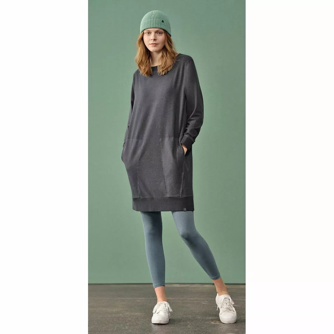 Vestido deportivo, amplio corte en jersey de cáñamo y algodón orgánico, estreche con una lata de elastán. Bolsillos laterales grandes.