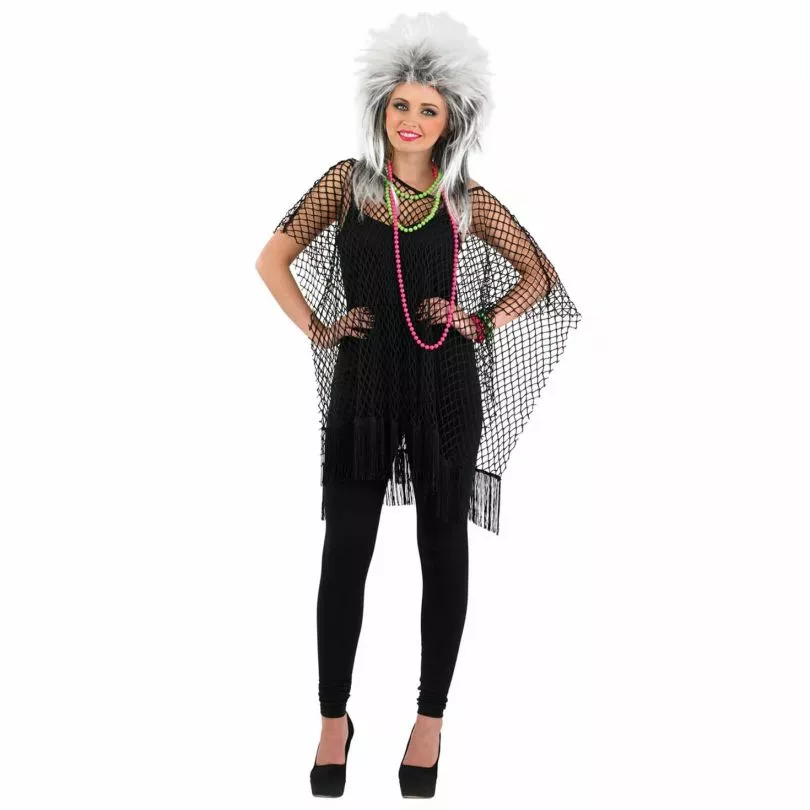 El producto incluye: Poncho oversize largo negro de rejilla y flecos. Este Disfraz está disponible en talla única y le queda a la mayoría de adultos.Disfraz resistente y de excelente calidad para complementar tu disfraz. Nuestra empresa fue fundada en 2009 por 3 amigos apasionados por los disfraces.Tenemos oficinas en US,UK y Europa.Contamos con cientos de disfraces,diseñados y confeccionados con la más alta calidad.Perfecto poncho oversize para completar tu disfraz punk en carnavales y fiestas temáticas de los años 70-80. Ideal para Halloween, festivales y cosplay de rockera punky.
