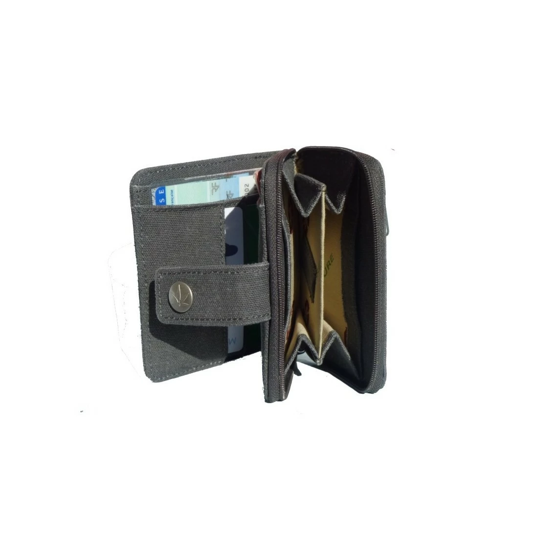 Aquí hay una cartera completa y sólida, es ecológica y diseñada por la marca Pure. Almacenamiento de divisas, tarjetas, entradas, papeles… Está diseñado en tejido cáñamo y algodón orgánico