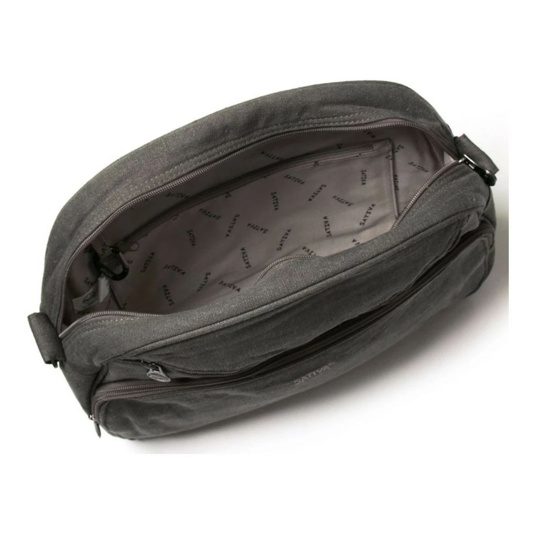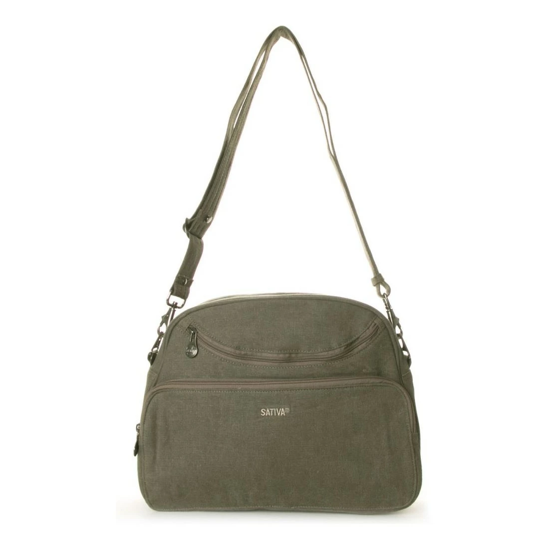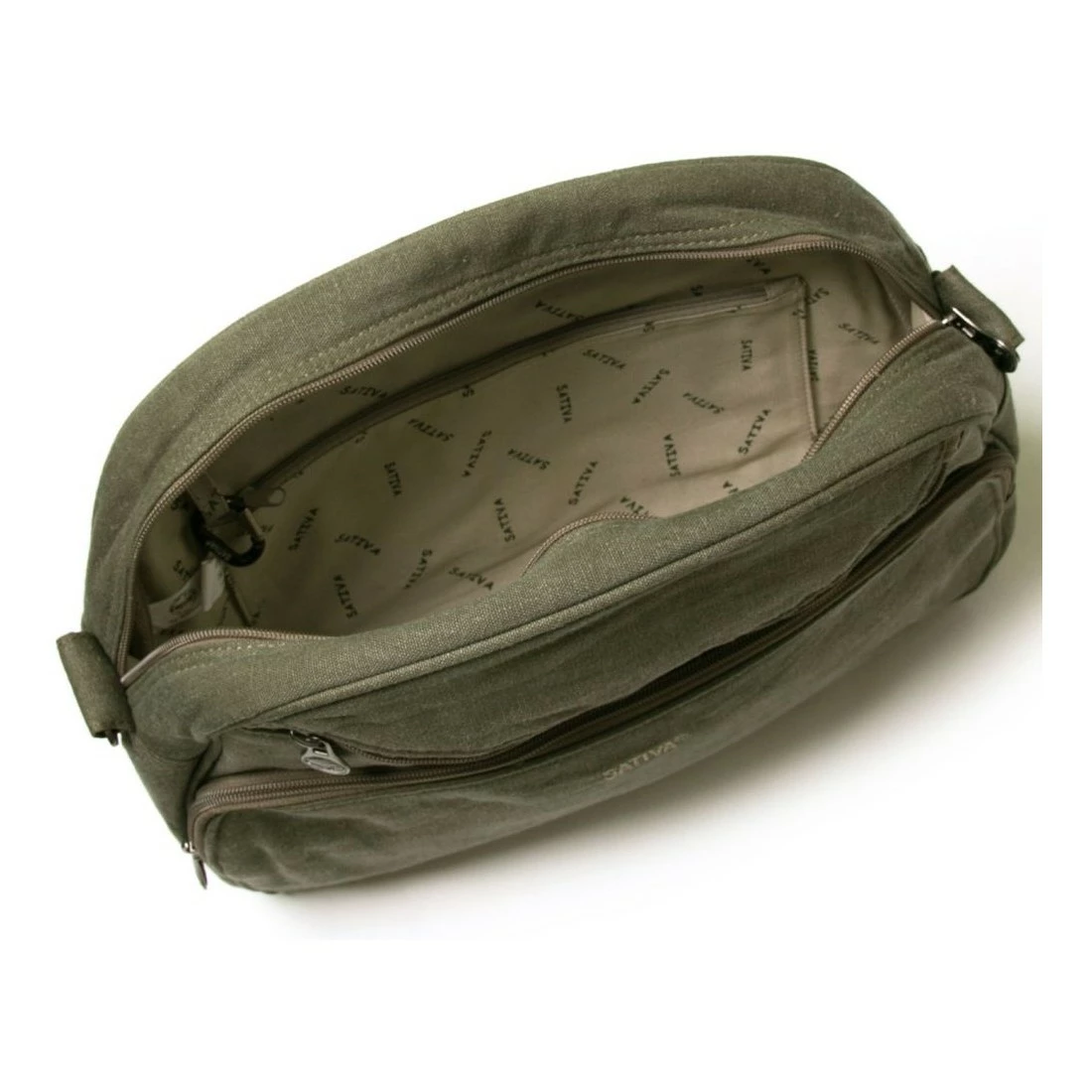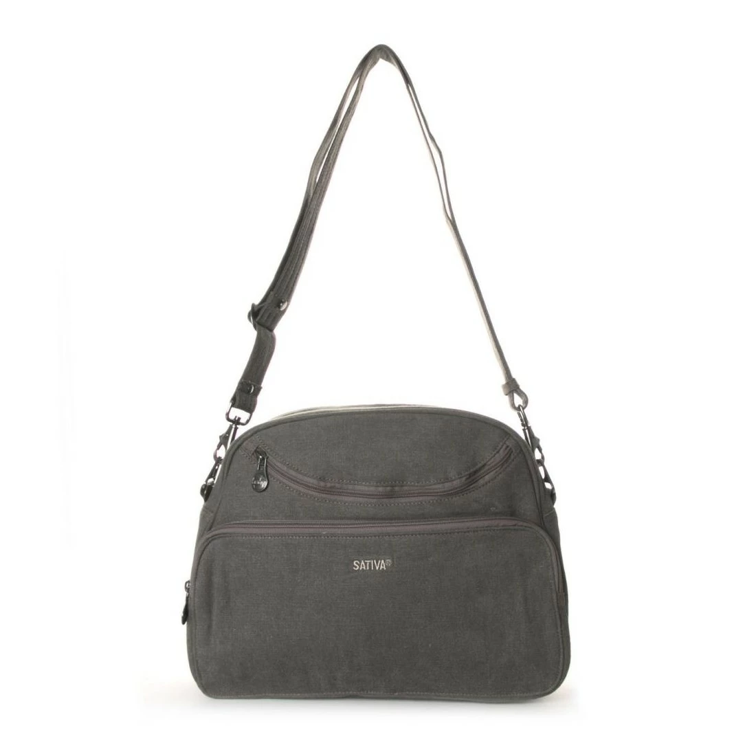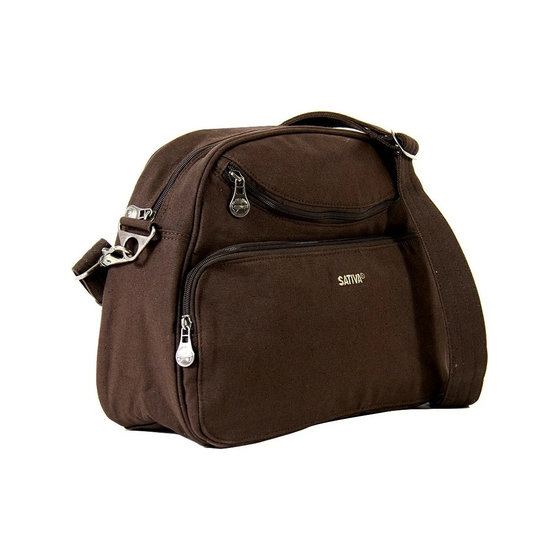 En el frente dos bolsillos, uno en toda la altura, también en la parte posterior del asiento para el almacenamiento.