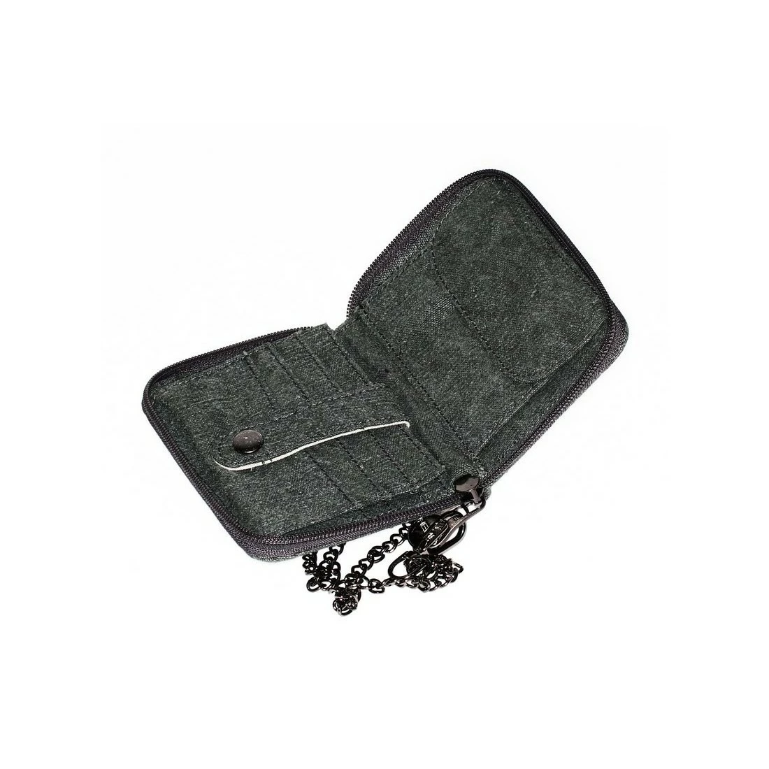 Soporte de cremallera y cadena (removible). Compartimentos de moneda, papel, tarjetas, notas. Diseñado sólidamente en un lienzo de cáñamo y algodón orgánico